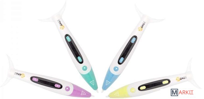 На детской 3D ручке находится всего 3 кнопки: загрузка пластика, выгрузка пластика и скорость подачи. Причем ребенку даже не нужно уметь читать: о включении, готовности к работе и смене скорости подачи пластика ручка оповестит голосом, а значит, ей с легкостью может рисовать даже дошкольник!