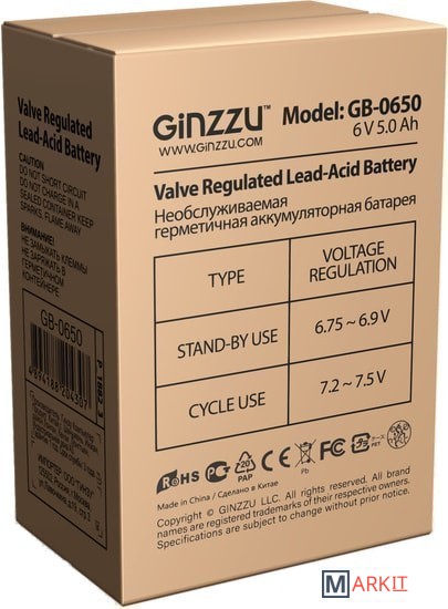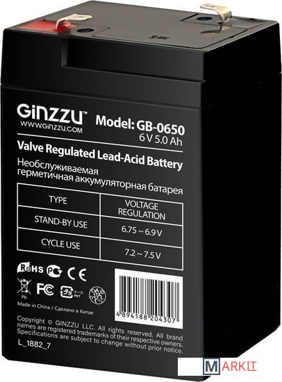 Markit » Аккумуляторы для ИБП » Аккумулятор для ИБП Ginzzu GB-0650 (6В/5 А·ч)