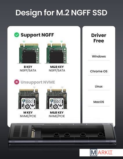 Для B и M+B ключей SATA, до 2 ТБ.