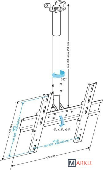 | Расстояние от стены (потолка) | 560 — 950 мм |