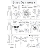 Детский набор трафаретов для 3D-рисования. На каждом трафарете изображен один объект с пояснениями о процессе его создания.Поставляется в конверте. В комплект поставки входят трафареты: колье, броши для кармана, диадема, браслеты и шкатулка.