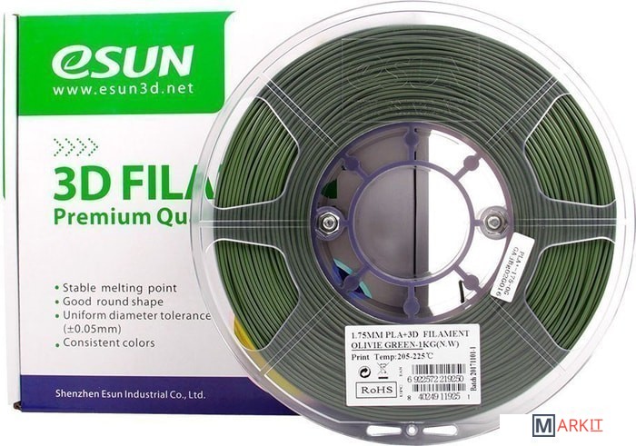 Markit » Расходные материалы для 3д принтера » Пластик eSUN PLA+ 1.75 мм 1000 г (оливковый)